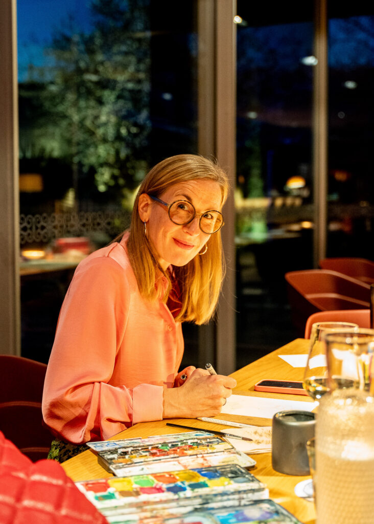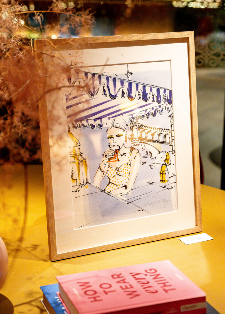 Ein besonderer Moment: Nadja nahm Stift und Papier und illustrierte live für die Gäste. Zwischen Gesprächen, Aperitivo-Gläsern und der vibrierenden Atmosphäre eines Hauses, das im Herzen ein Atelier sein könnte, entstanden Zeichnungen, die so spontan wie poetisch waren. Kunst wurde Berührung – und Begegnung.